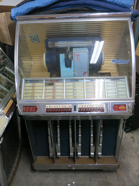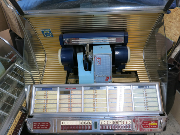 Our Wurlitzer 2310S Jukebox just arrived and will need to be serviced. These photos show what it can look like once completed